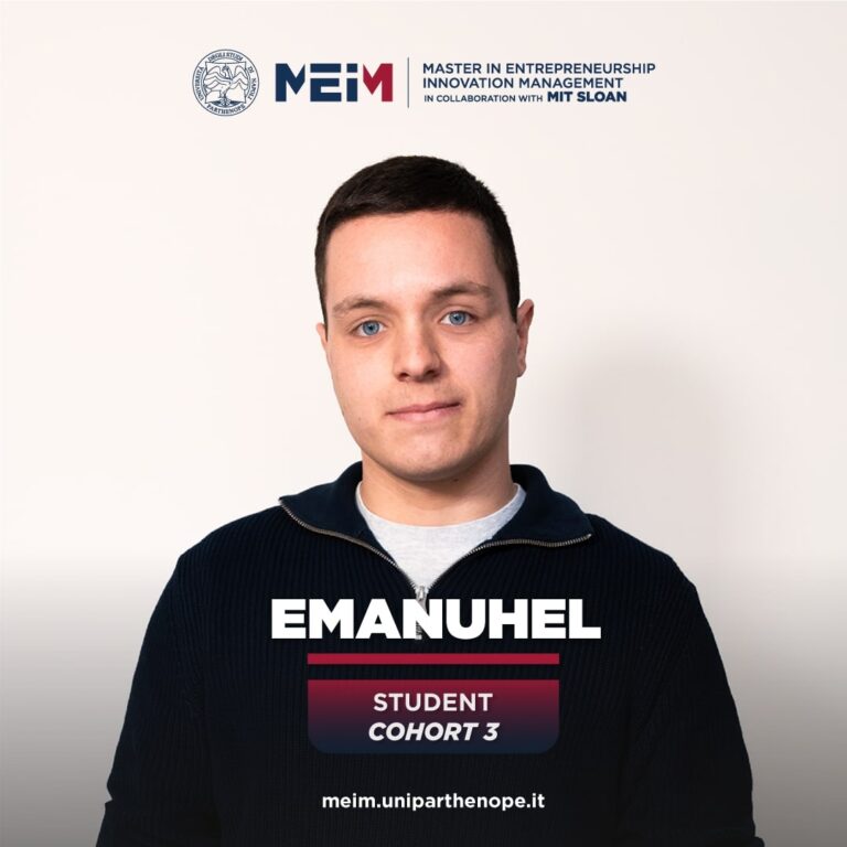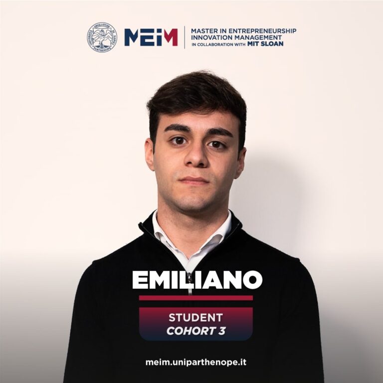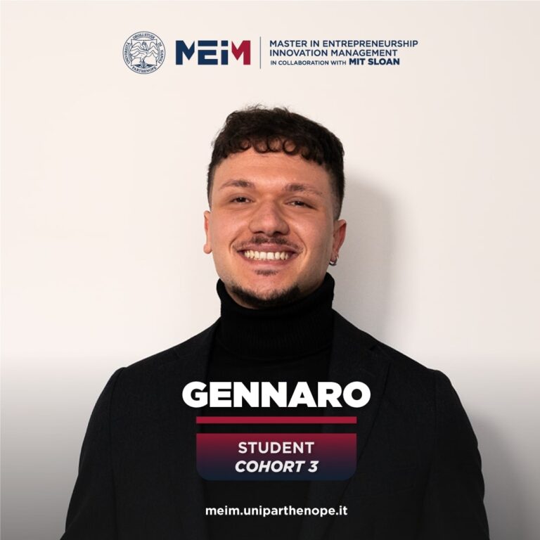 I joined the Master's in Entrepreneurship and Innovation Management because, throughout my growth, year after year, I have always wanted to leap in quality both on a personal and professional level and so far I'm confident that this program is the right choice for me. The high level of Parthenope University, from which I graduated, and the prestigious collaboration with the Massachusetts Institute of Technology (MIT) played a fundamental role in my decision. The central theme of this program is "Innovation," which I believe also has a positive impact on the personal aspects of the people who study it. Furthermore, Innovation is a dynamic and versatile subject applicable to all industries, and I aspire to become an expert in this field. Moreover, MEIM provides expertise for the creation and development of one's business idea to be launched through a startup and at the same time enhances the right skills that allow students to enter the management area, which constitutes a key element of a company. I considered these aspects a pivotal feature useful for clarifying which career path to pursue upon completing my studies.